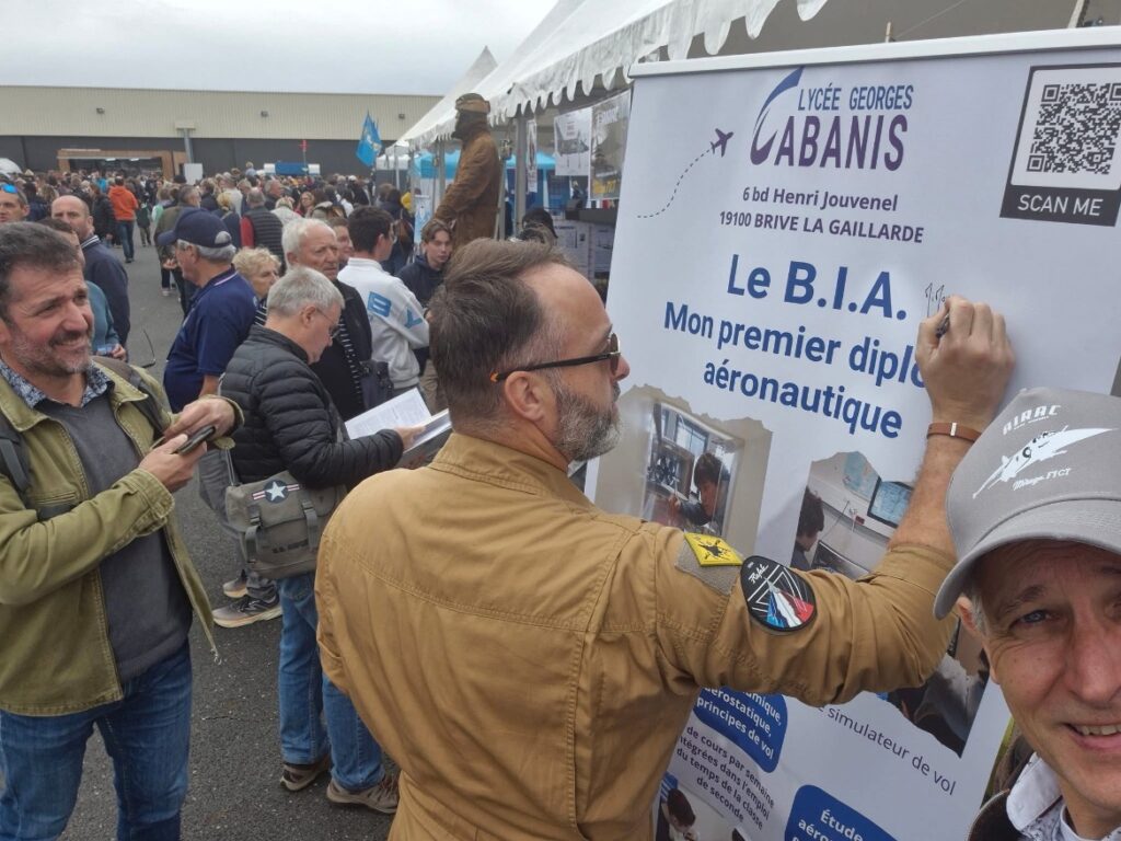 ● Le 28/09, Le Lycée Cabanis au meeting aérien 2025 de Brive ! Les enseignants du BIA (brevet d’initiation à l’aéronautique) ont eu l’honneur de faire dédicacer leur kakemono par le capitaine Jean-Brice Millet, pilote du Rafale solo display!